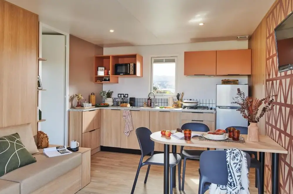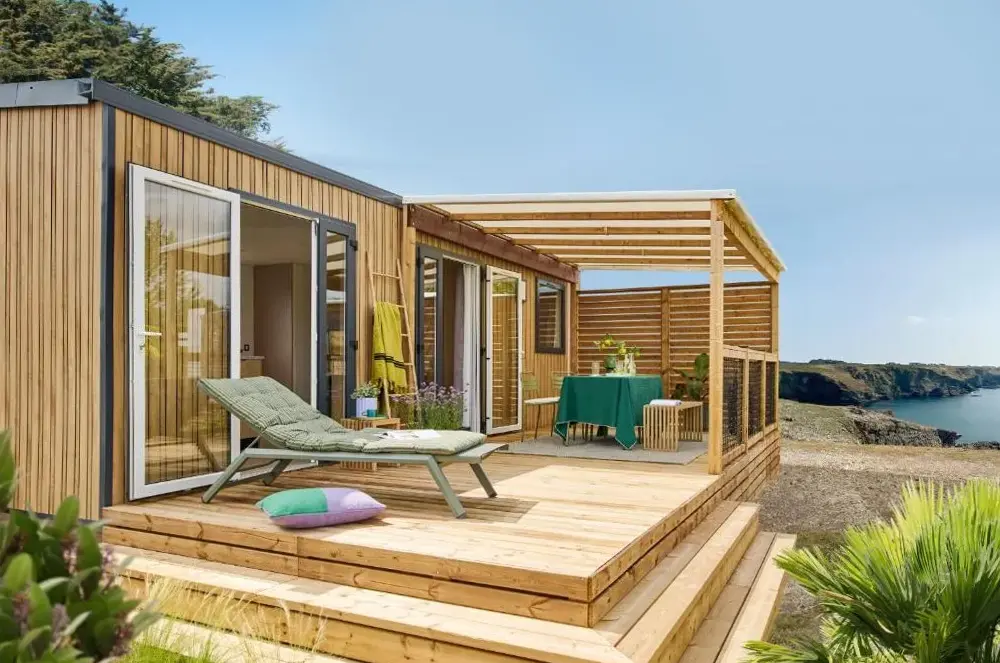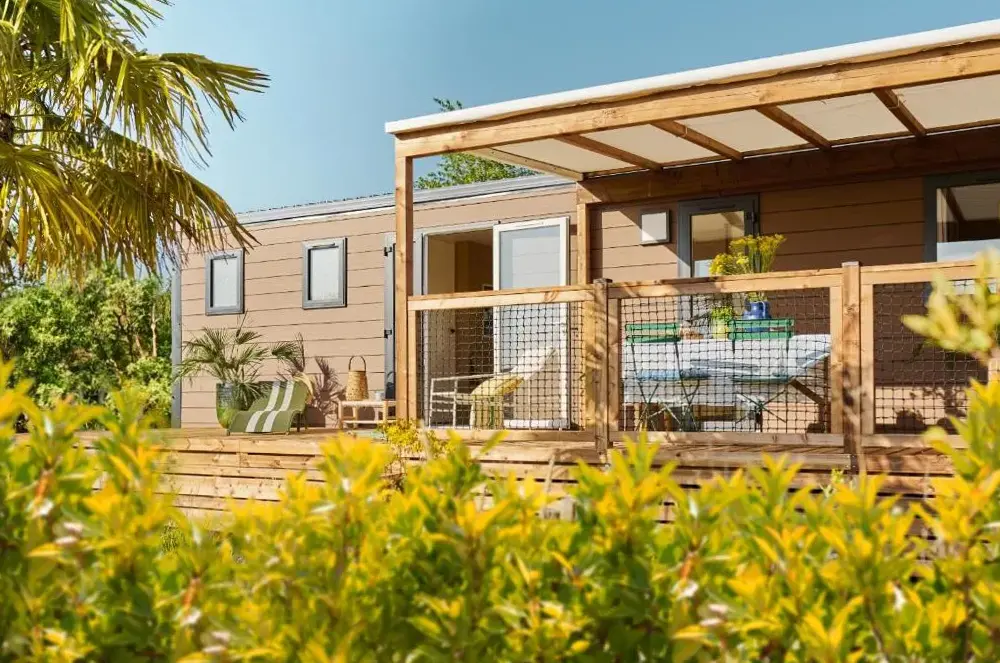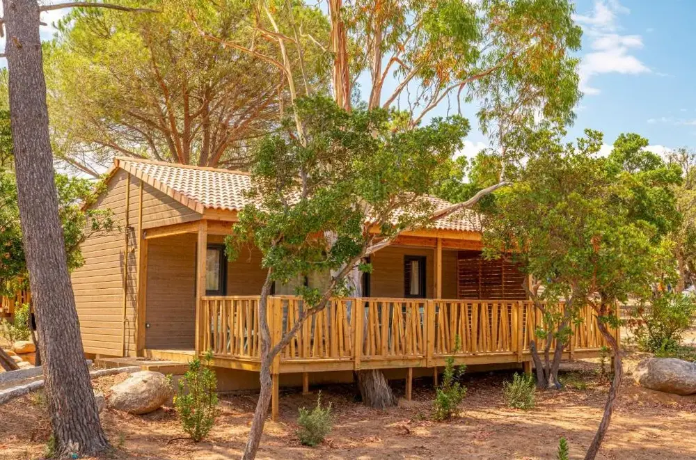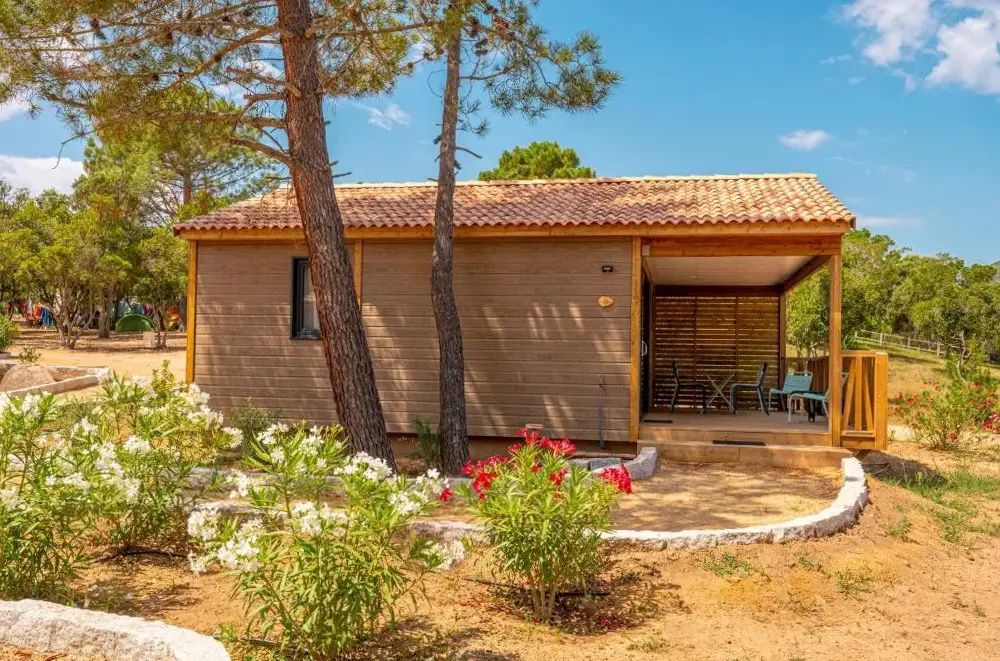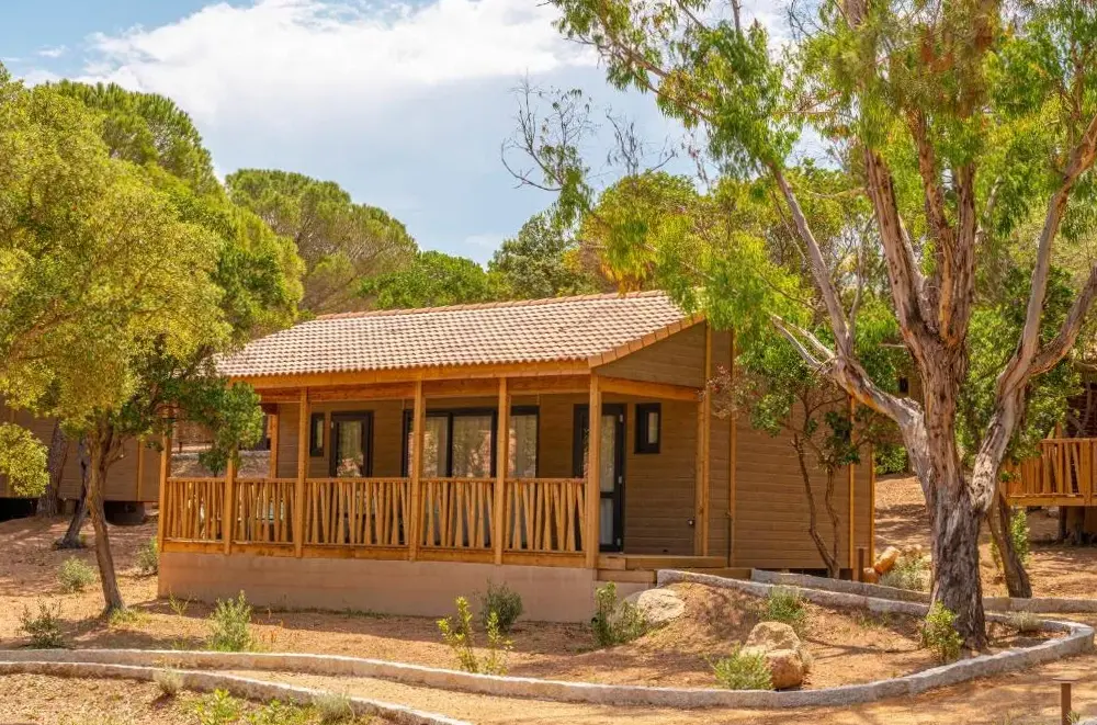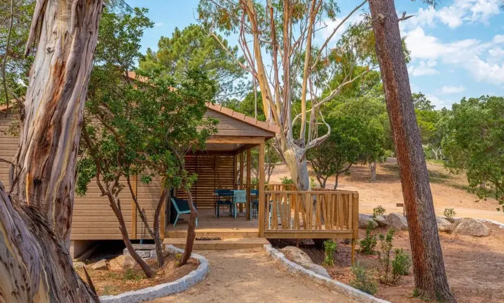 Chalets sind sehr schön mit einer sehr geräumigen und lebenswerten Terrasse. Der private Strand und das Meer sehr schön und leicht zugänglich